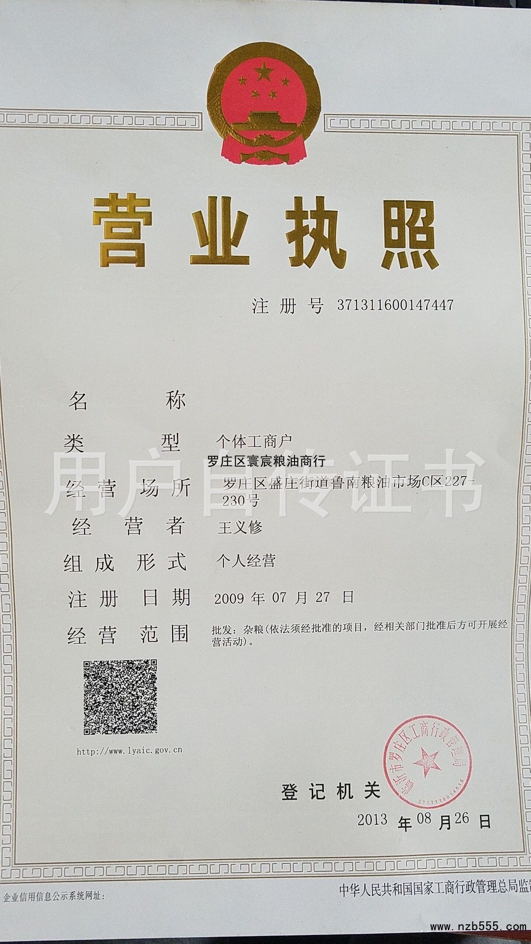 | 發(fā)證機(jī)構(gòu): | 臨沂市羅莊區(qū)工商行政管理局 | 發(fā)證時(shí)間 : | 2013-08-26 |