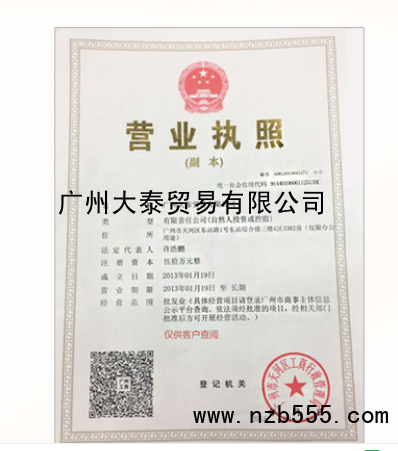 榮譽(yù)資質(zhì) 廣州大泰貿(mào)易有限公司