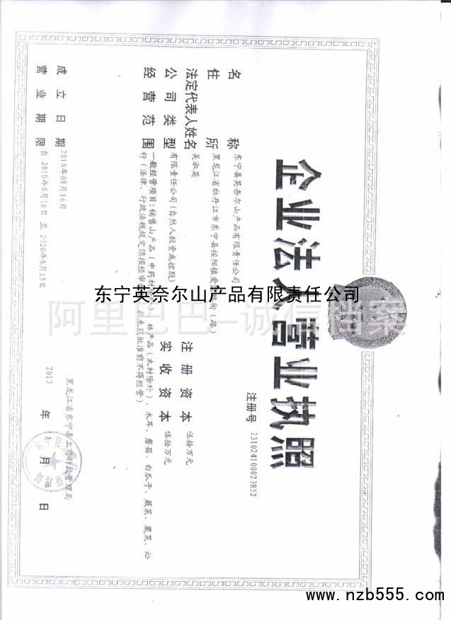 榮譽(yù)資質(zhì) 東寧英奈爾山產(chǎn)品有限責(zé)任公司