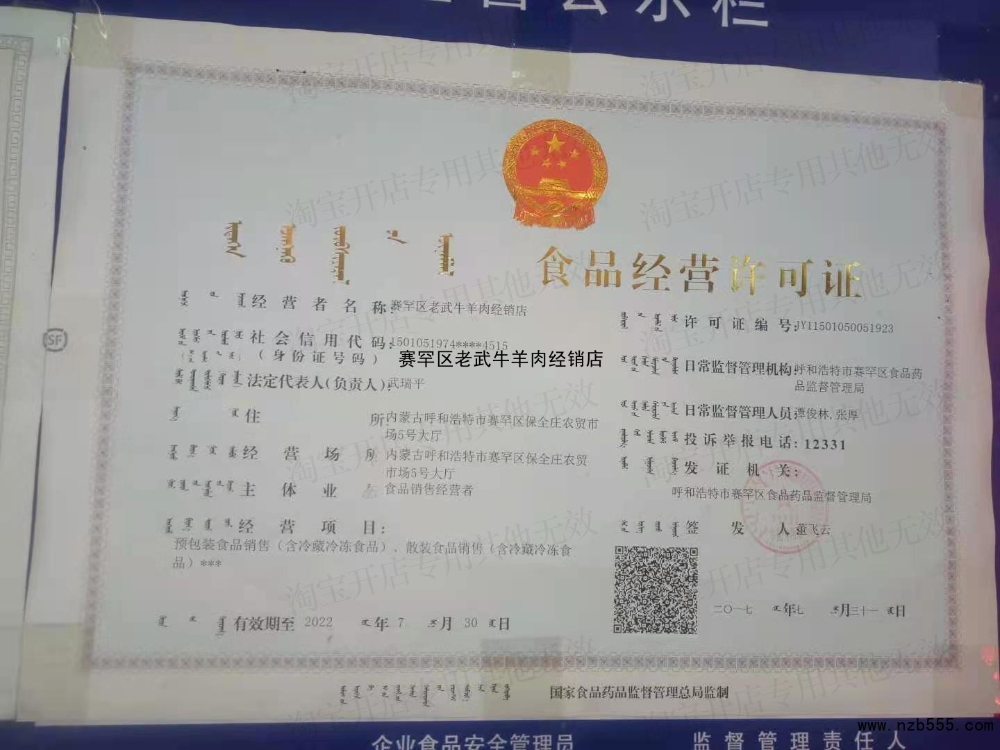 榮譽(yù)資質(zhì) 賽罕區(qū)老武牛羊肉經(jīng)銷(xiāo)店