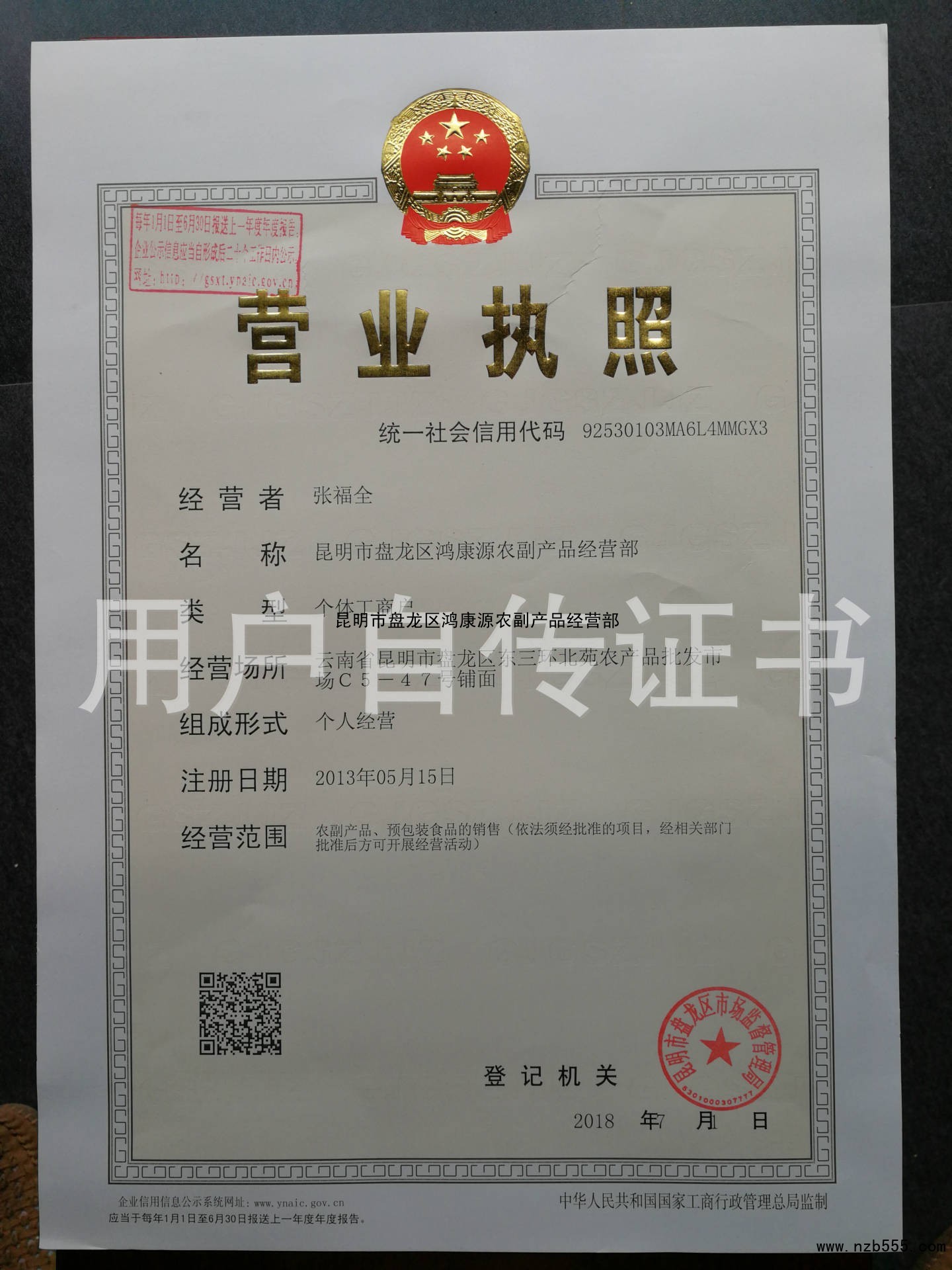 | 發(fā)證機(jī)構(gòu): | 昆明市盤(pán)龍區(qū)市場(chǎng)監(jiān)督管理局 | 發(fā)證時(shí)間 : | 2018-07-01 |