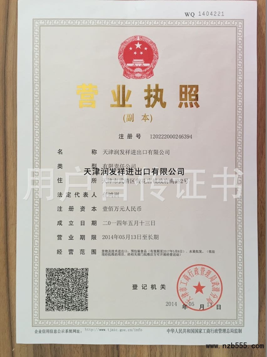 | 發(fā)證機(jī)構(gòu): | 天津市工商行政管理局武清分局 | 發(fā)證時(shí)間 : | 2014-05-13 |