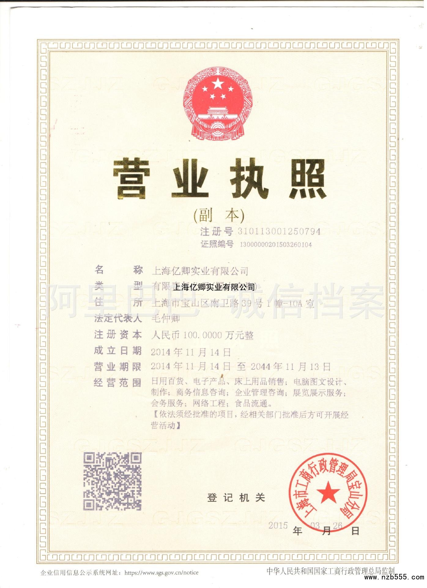 首頁 > 榮譽(yù)資質(zhì) > 上海億卿實(shí)業(yè)有限公司