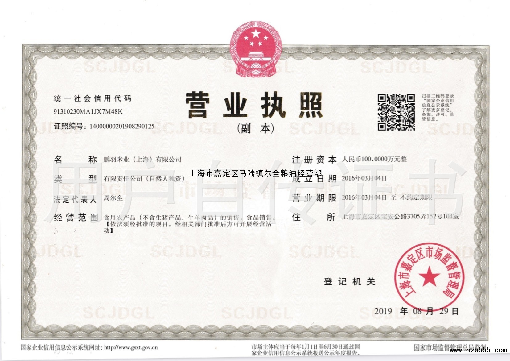 上海市嘉定區馬陸鎮爾全糧油經營部