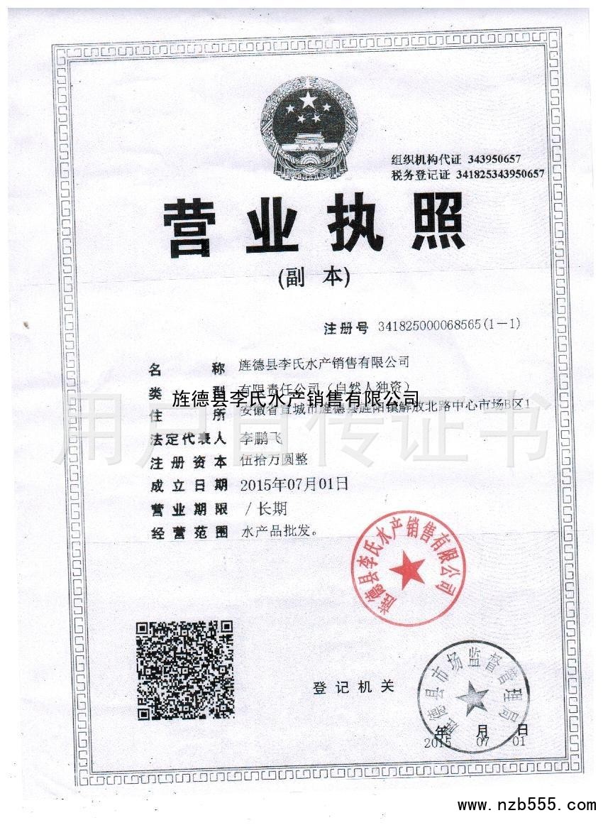 水產品、預包裝食品(不含嬰幼兒配方乳粉)批發、零售。(依法須經批準的項目,經...