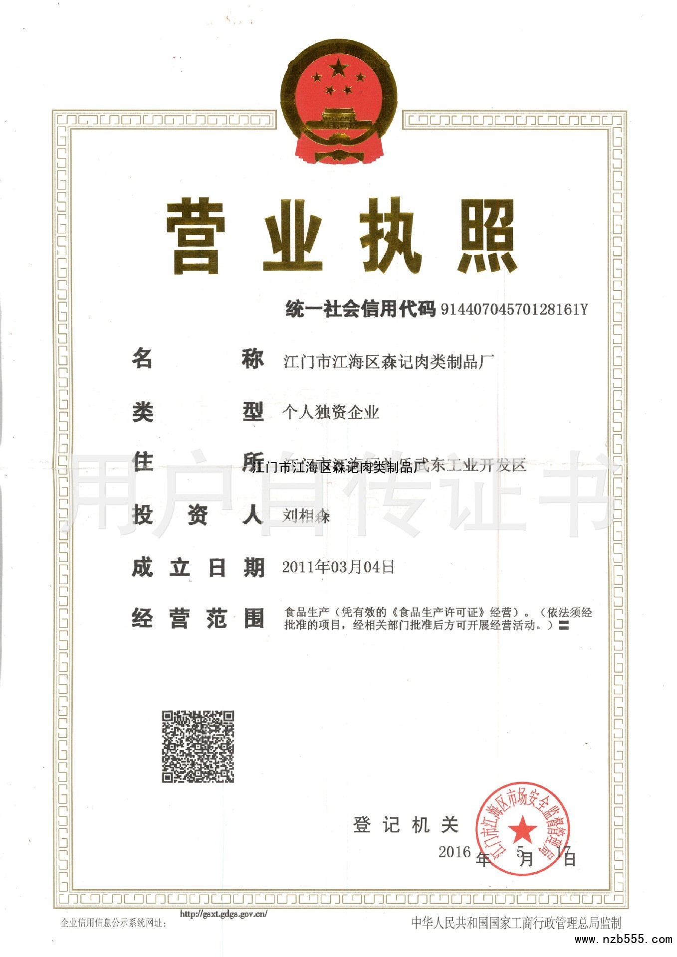 首頁(yè) > 榮譽(yù)資質(zhì) > 江門市江海區(qū)森記肉類制品