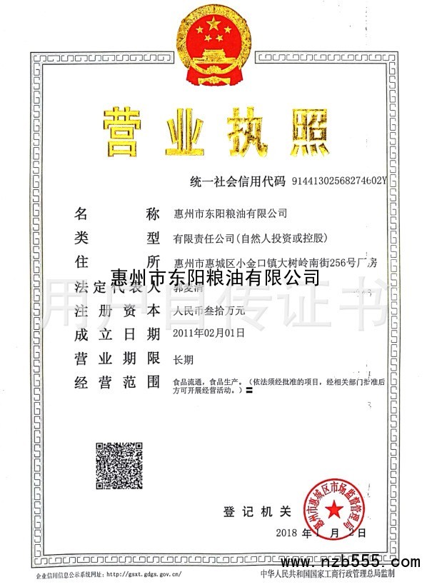 | 發(fā)證機(jī)構(gòu): | 惠州市惠城區(qū)市場(chǎng)監(jiān)督管理局 | 發(fā)證時(shí)間 : | 2018-01-02 |