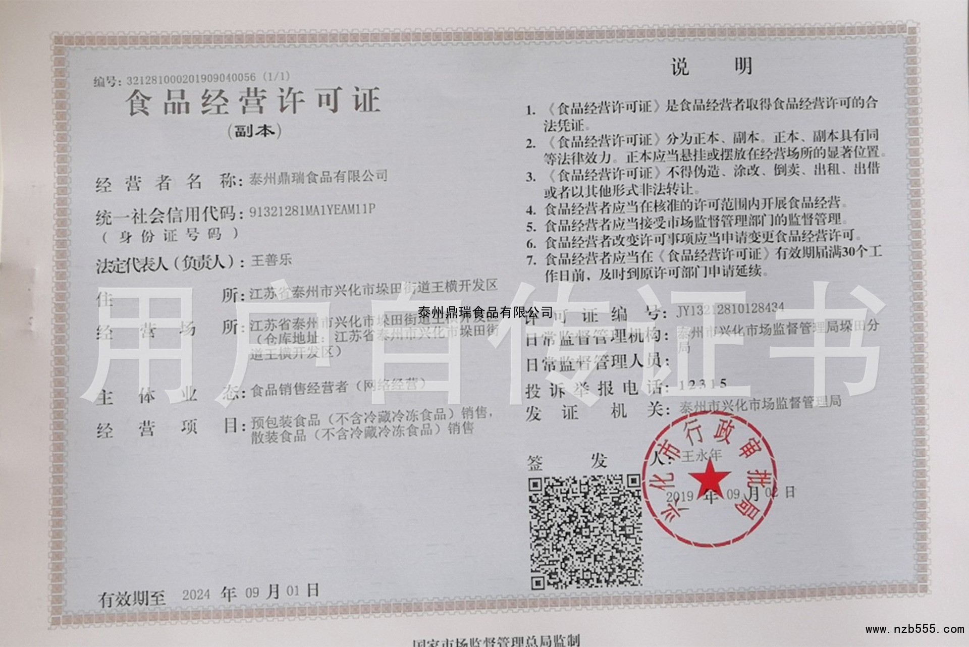 食品經營許可證(除乳制品、嬰幼兒配方乳粉、酒之外的生產許可證)