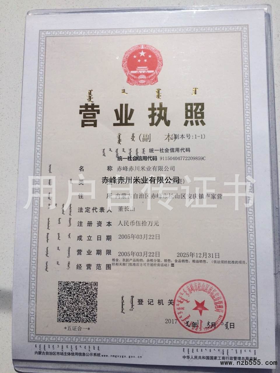 | 發(fā)證機(jī)構(gòu): | 赤峰市松山區(qū)市場(chǎng)監(jiān)督管理局 | 發(fā)證時(shí)間 : | 2017-01-05 |