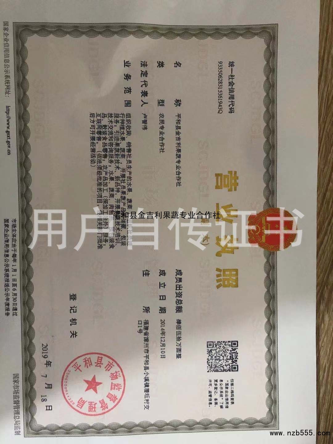 榮譽(yù)資質(zhì) 平和縣金吉利果蔬專業(yè)合作社