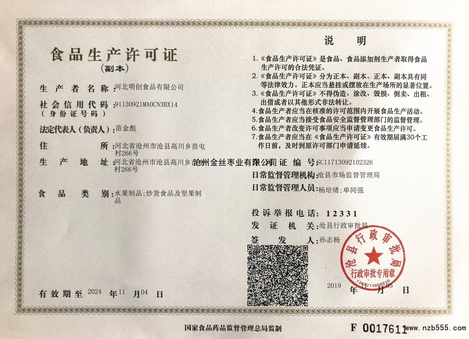 榮譽(yù)資質(zhì) 滄州金絲棗業(yè)有限公司