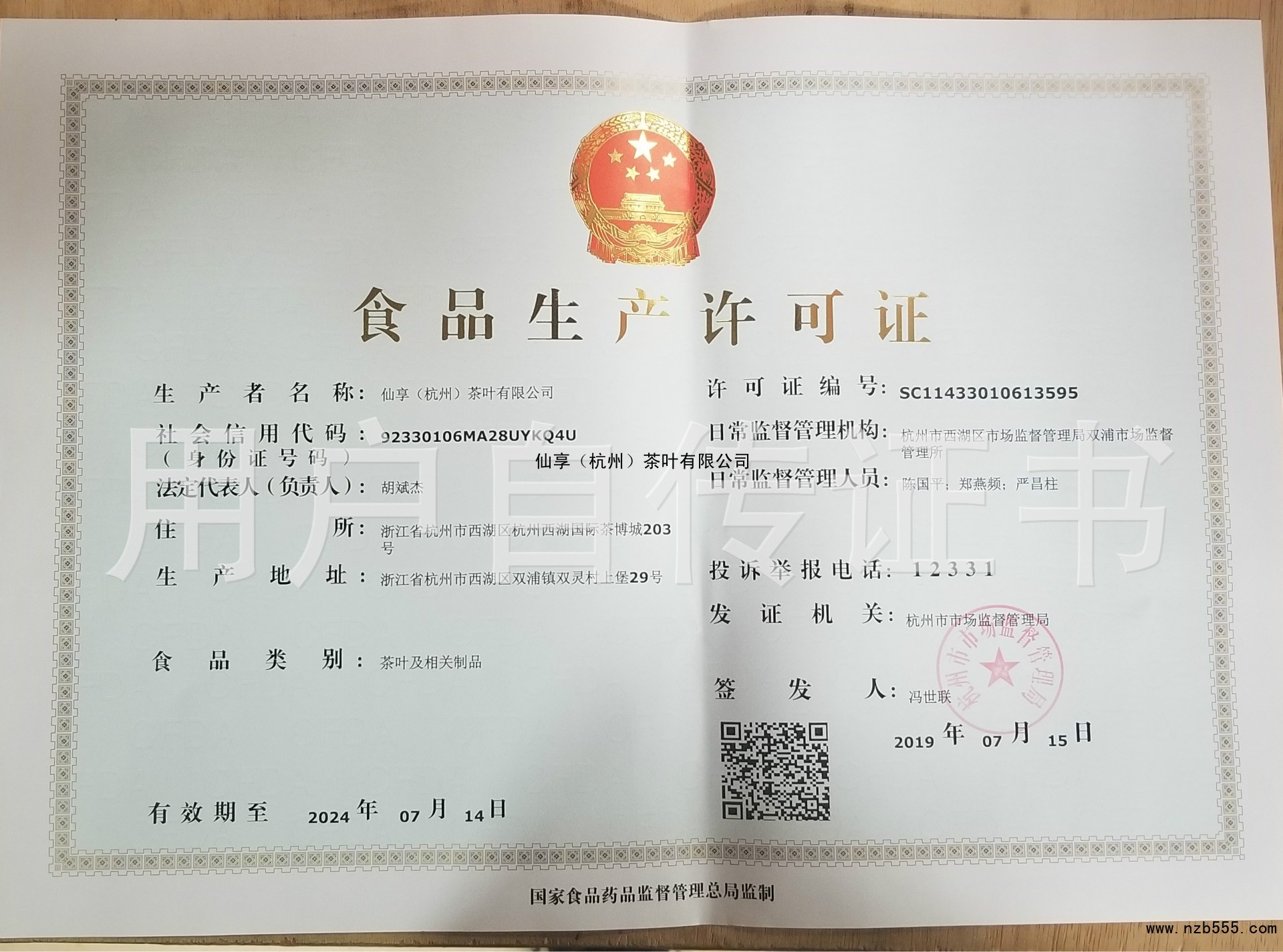 榮譽(yù)資質(zhì) 仙享(杭州)茶葉有限公司