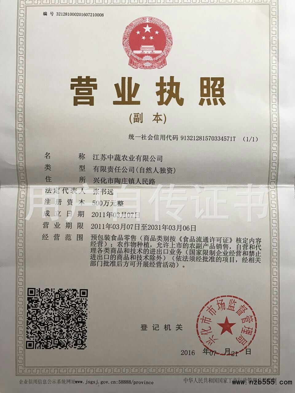 | 發(fā)證機(jī)構(gòu): | 興化市市場(chǎng)監(jiān)督管理局 | 發(fā)證時(shí)間 : | 2016-07-21 |