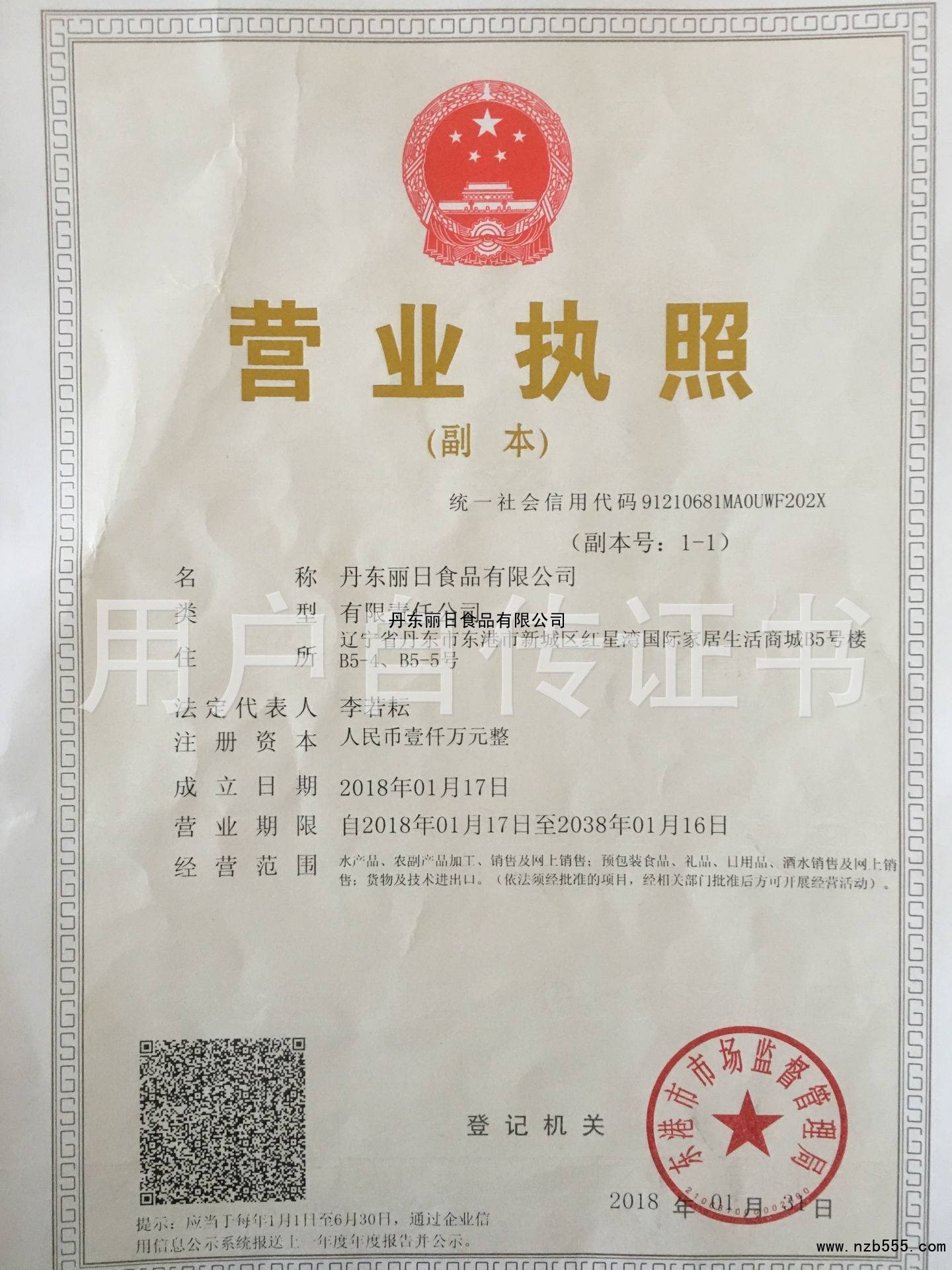 首頁(yè) > 榮譽(yù)資質(zhì) > 丹東麗日食品有限公司