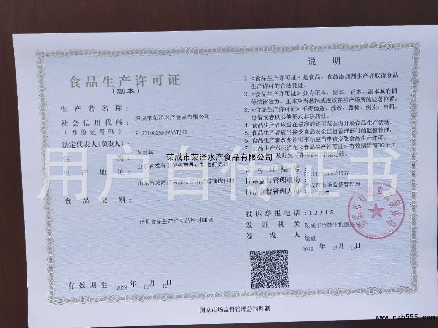 榮譽(yù)資質(zhì) 榮成市榮澤水產(chǎn)食品有限公司