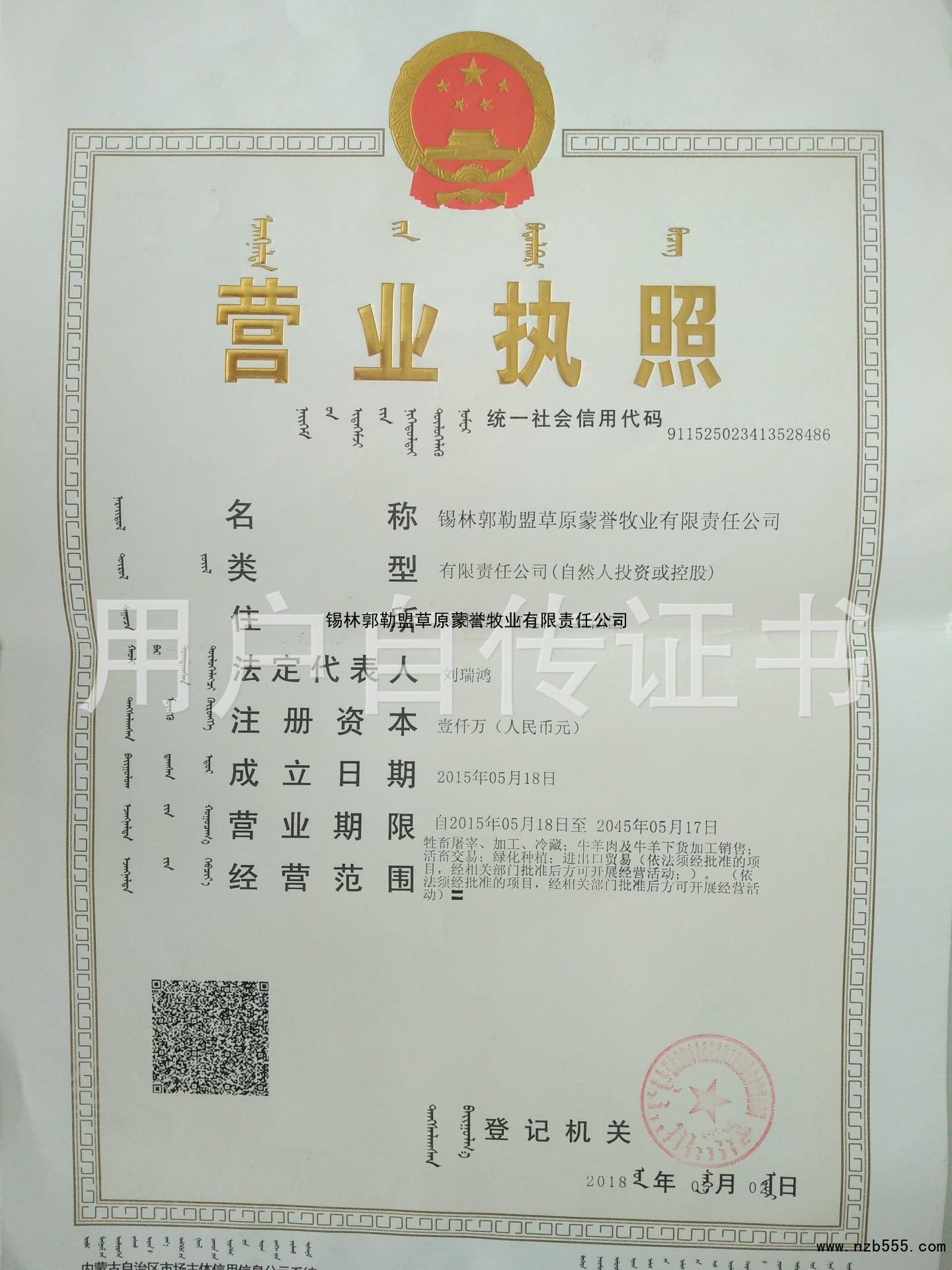 錫林郭勒盟草原蒙譽牧業有限責任公司