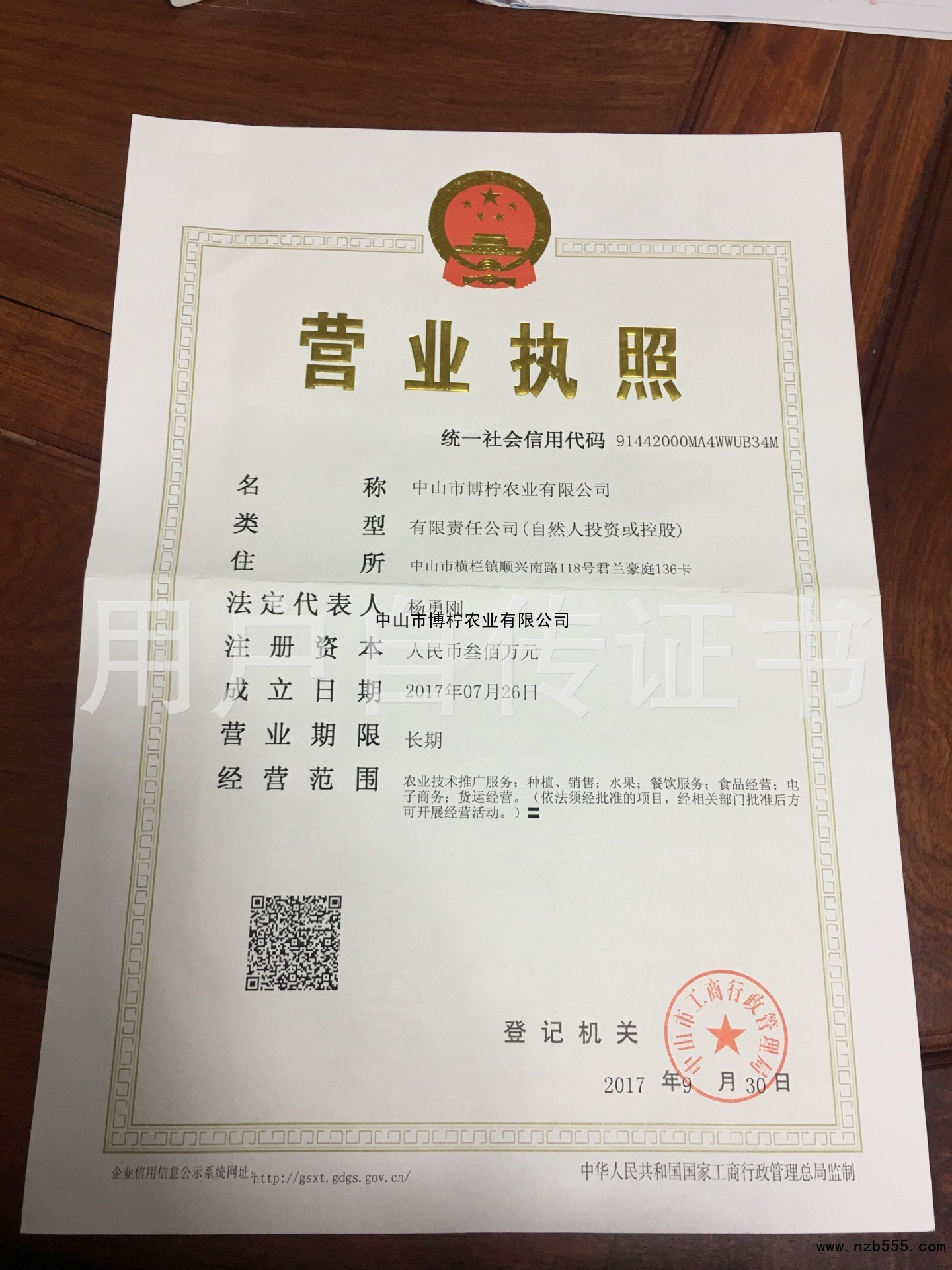 榮譽(yù)資質(zhì) 中山市博檸農(nóng)業(yè)有限公司