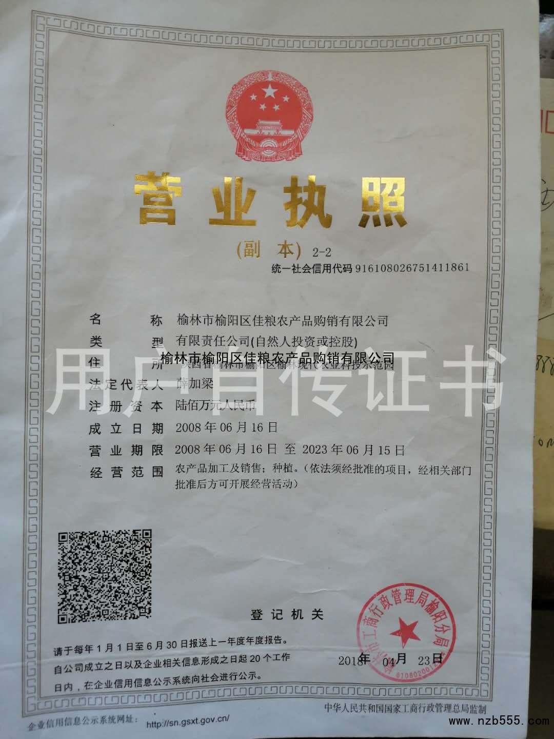 榆林市榆陽區佳糧農產品購銷有限公司