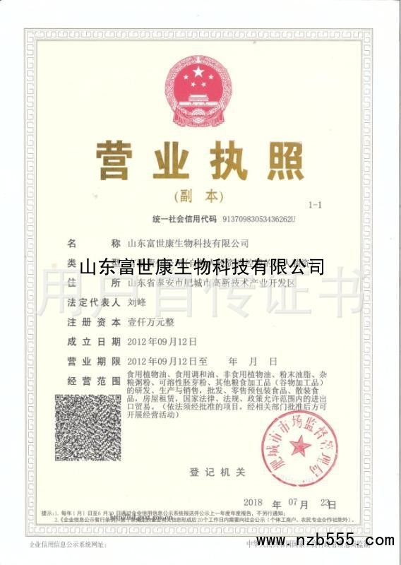 | 發(fā)證機(jī)構(gòu): | 肥城市市場監(jiān)督管理局 | 發(fā)證時(shí)間 : | 2018-07-23 |