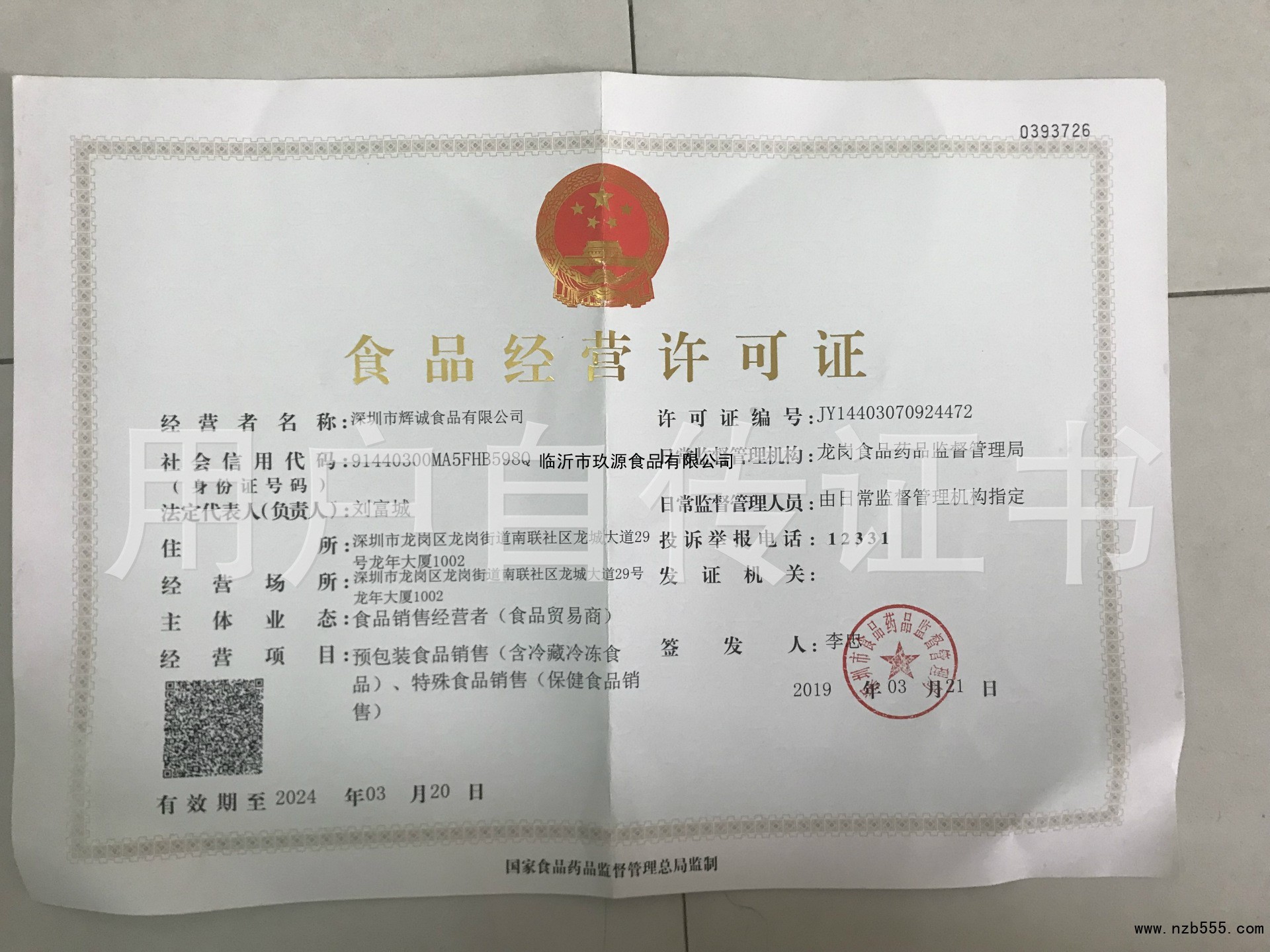 食品流通許可證(除乳制品、嬰幼兒配方乳粉、酒之外的流通許可證)