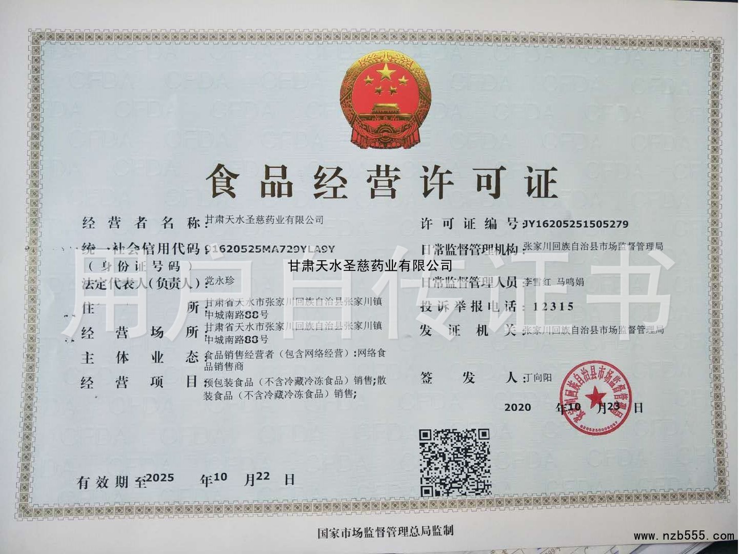 榮譽(yù)資質(zhì) 食品經(jīng)營(yíng)許可證(除乳制品、嬰幼兒配方乳粉、酒之外的生產(chǎn)許可證)