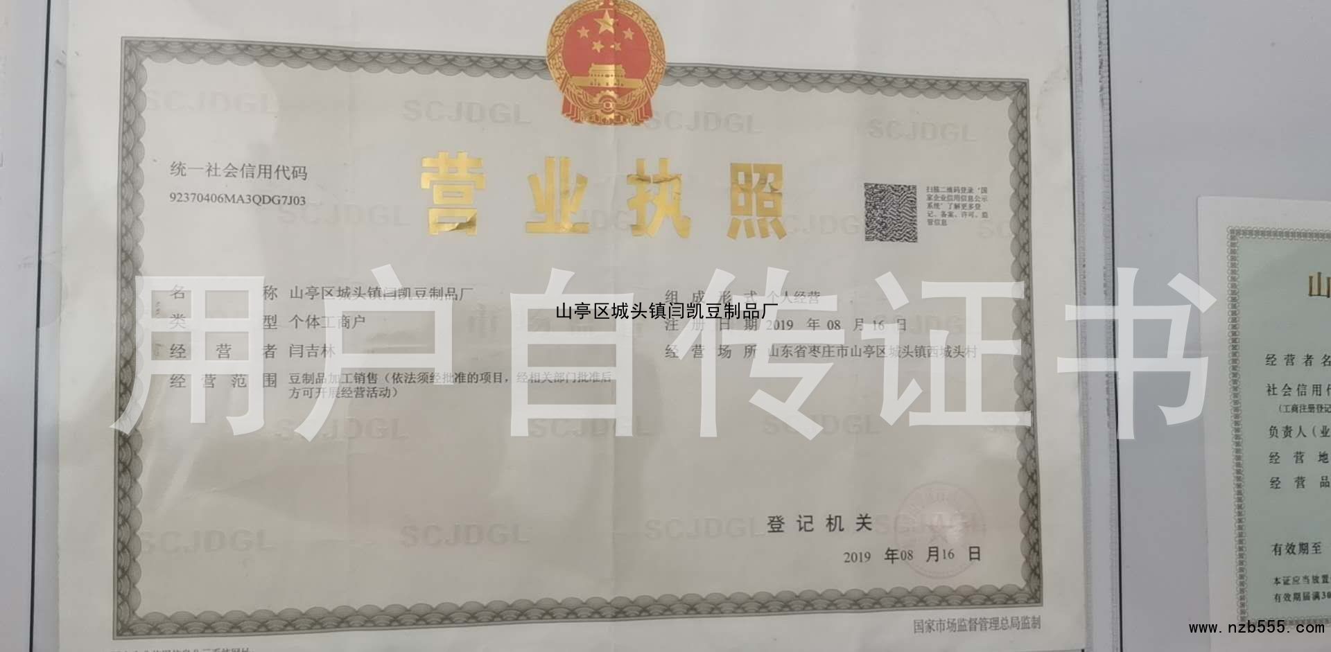 | 發(fā)證機(jī)構(gòu): | 棗莊市山亭區(qū)行政審批服務(wù)局 | 發(fā)證時(shí)間 : | 2019-08-16 |