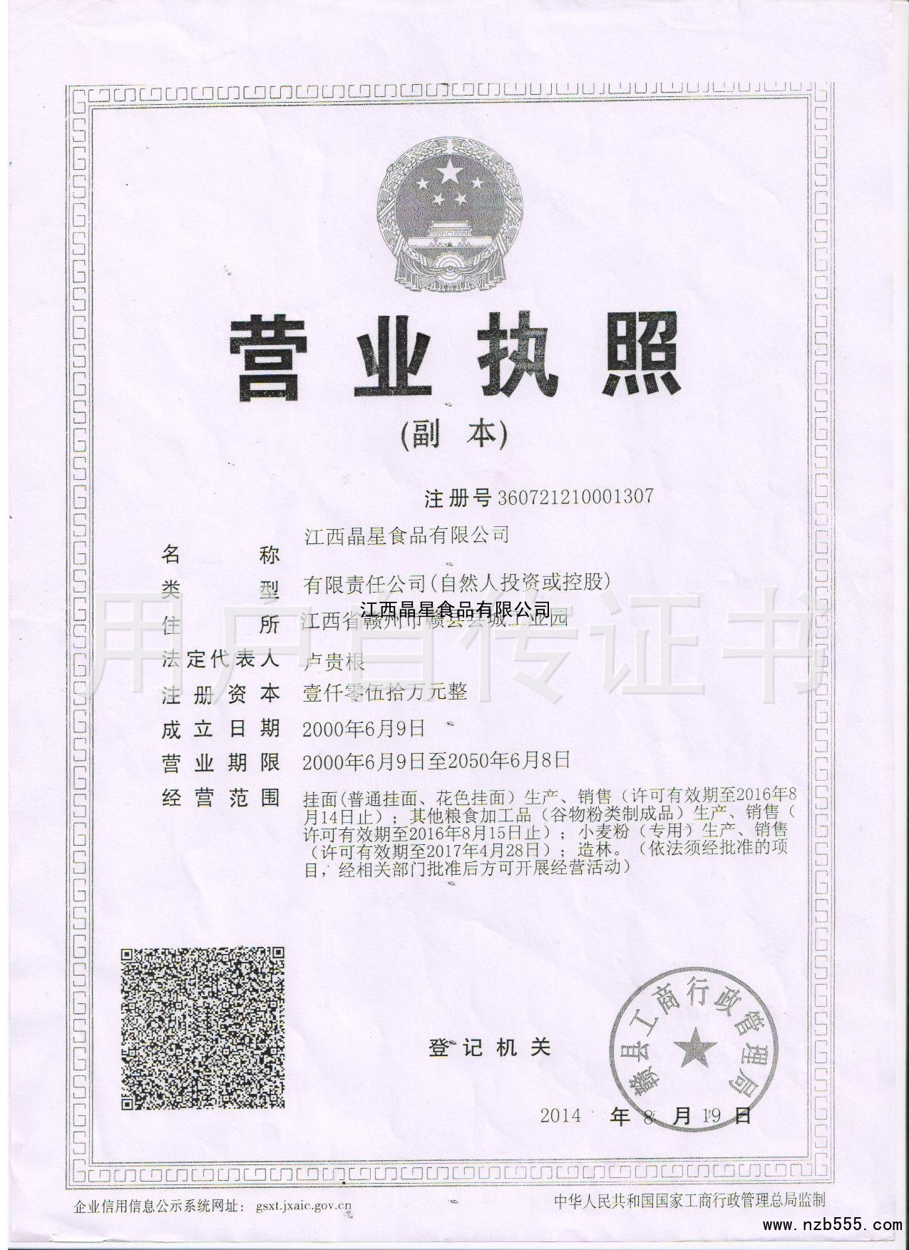 首頁(yè) > 榮譽(yù)資質(zhì) > 江西晶星食品有限公司