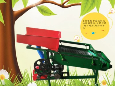 本機(jī)為二層篩網(wǎng),先經(jīng)過進(jìn)料口處風(fēng)機(jī)抽風(fēng),直接抽走重量輕的雜葉或麥秸稈,上層篩的初次篩分再把大雜清理過,好的糧食(種子)直接落到下層篩網(wǎng)上,下層篩網(wǎng)會(huì)把糧食(種子)中的小雜.小石子.有缺陷的糧食(種子)直接漏掉,完好的糧食(種子)會(huì)從出料口篩分出來。該小型清糧機(jī)解決了揚(yáng)場(chǎng)機(jī)的功能單一,不能有效去除石子.土塊的缺陷,更能為清理、凈選糧食(種子)帶來滿意的效果。該機(jī)有占地小,移動(dòng)方便,便以維修,除塵除雜效率明顯,能耗低,使用簡便等優(yōu)點(diǎn)。