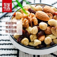 原料和配料葡萄干,蔓越莓干(蔓越莓,白砂糖,葵花籽油),核桃仁,扁桃仁,榛子仁,紅棗片.