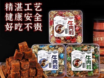 包裝規(guī)格盒裝牛肉粒沙爹味,盒裝牛肉粒五香味,盒裝牛肉粒香辣味,零零寶盒裝牛肉粒沙爹味,零零寶盒裝牛肉粒五香味,零零寶盒裝牛肉粒香辣味,袋裝牛肉粒(沙爹味)x2袋,袋裝牛肉粒(五香味)x2袋,袋裝牛肉粒(香辣味)x2袋