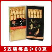 長白山干人參生曬參禮盒 原皮小黑盒人參批發展會代發產地批發