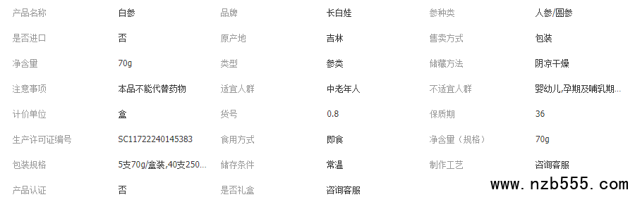 長白山人參吉林特產(chǎn)白參長白山人參白參廠家貨源5支一盒70g批發(fā)