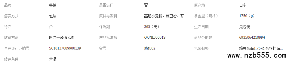 詳細(xì)信息 ![]() 此款面條為實(shí)惠裝,有綠豆雜面,麥芯掛面,雞蛋掛面,小米掛面,雜糧掛面5種口味,重量每袋可裝1.75kg.