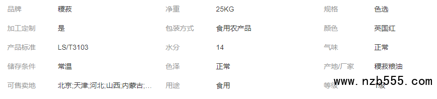 詳細信息 ![]() 廊坊稷菽糧油有限公司成立于2018年06月07日,注冊地位于河北省廊坊市文安縣文安鎮趙么村,法定代表人為王玉紅。經營范圍包括收購銷售糧食;加工銷售豆類、小麥粉、大米、植物油;銷售預包裝食品、散裝食品;貨物進出口 山西產紅蕓豆顆粒大、顆粒飽滿、顏色鮮紅、口味獨特,深受國內食品廠的喜愛并且深受國外客戶的青睞常年出口海外。 |