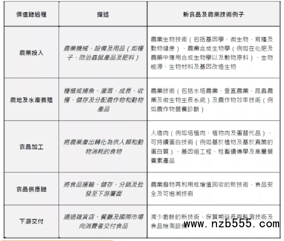 其中新食品及農(nóng)業(yè)技術(shù)包括五大類:
