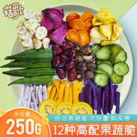 本產(chǎn)品為12種水果蔬菜混合250克綜合果蔬脆片。裝箱數(shù)32袋/箱,外箱尺寸51cm-39cm-26cm,重量9.2公斤,整件拿貨發(fā)貨更安全。