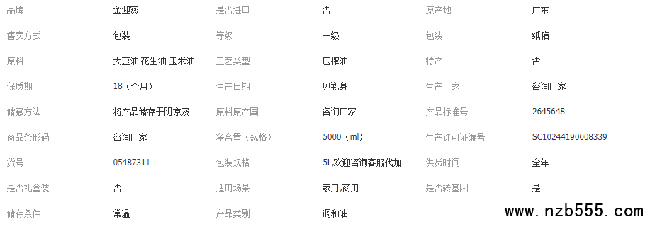 配料:玉米油、大豆油、花生油、大豆油加工原料為轉基因大豆
