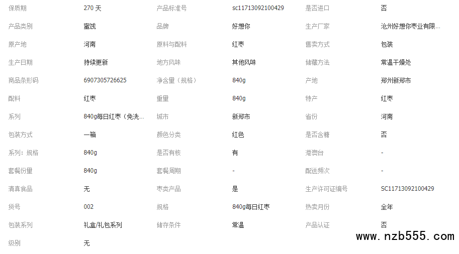 好想你每日紅棗840g新疆一級特產新鮮大棗灰棗免洗小包裝零食干貨