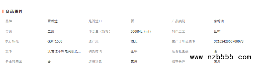 聚香達純正菜籽油5L香