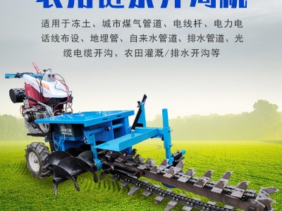 鏈條式水管打溝機小型手扶開溝機深溝管道開槽機犁地松土微耕機