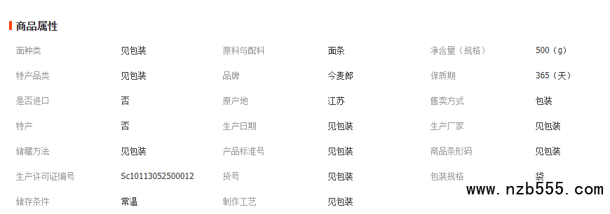 500克今麥郎原味掛面