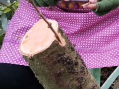 荔枝挑皮嫁接操作過程,接穗芽條與砧木接觸要2.5—3㎝